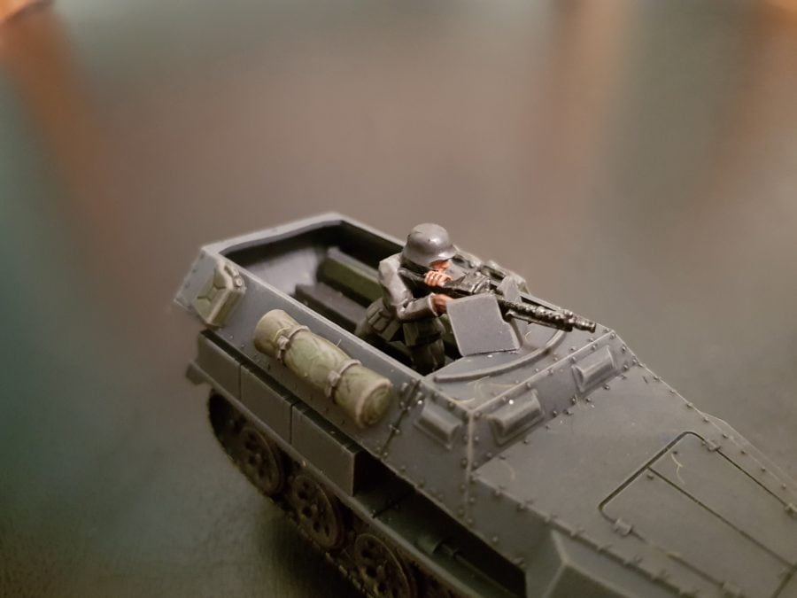 I really like how this Hanomag half-track turned out; it’s a great miniature (also from Bolt Action I believe) and it really wasn’t too bad to paint. This vehicle is so iconic for the German army, and is often seen in wargaming. I believe the mini is one of the many variants of Sd.Kfz. 251.