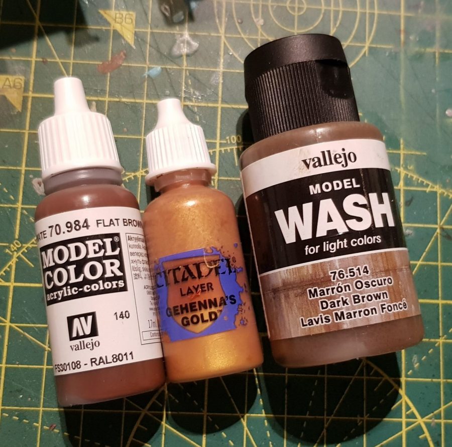 I painted the handles of the tools with Vallejo paint – 70.984 Flat Brown.