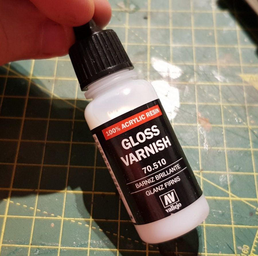 I used Vallejo’s Gloss Varnish 70.510